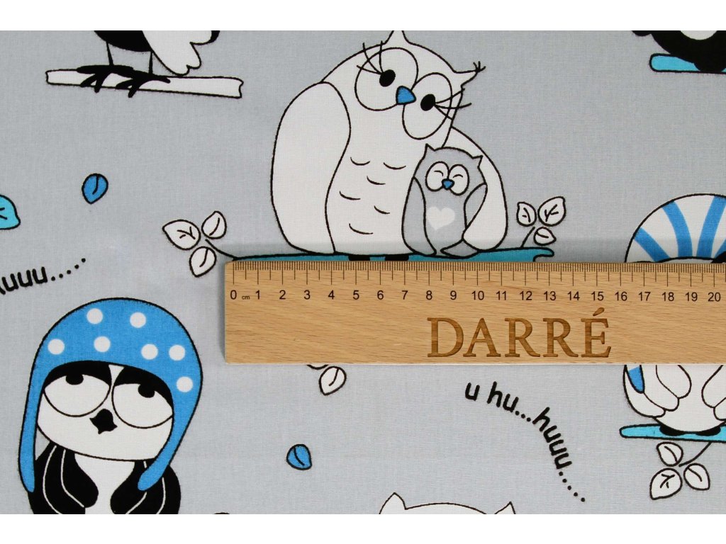 Bavlnená látka Bláznivé malej sovy - modrá š.160