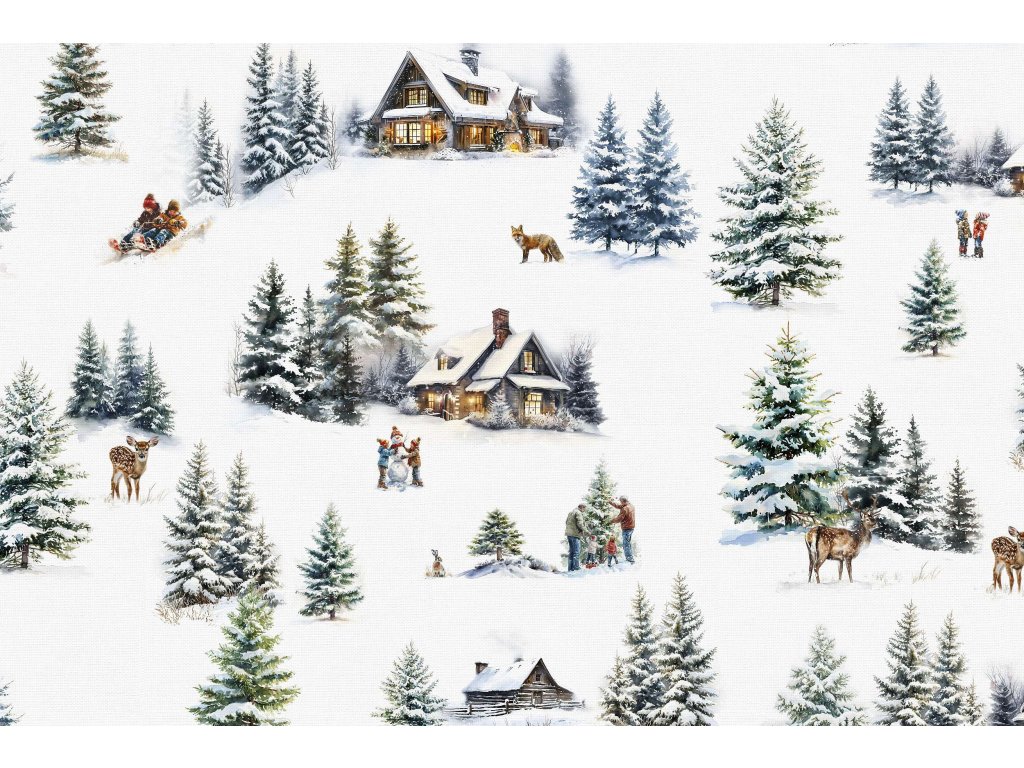 Bavlnená látka PERKÁL - Vianoce na horách š.147