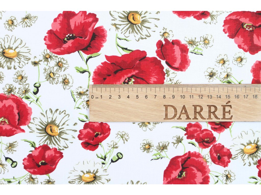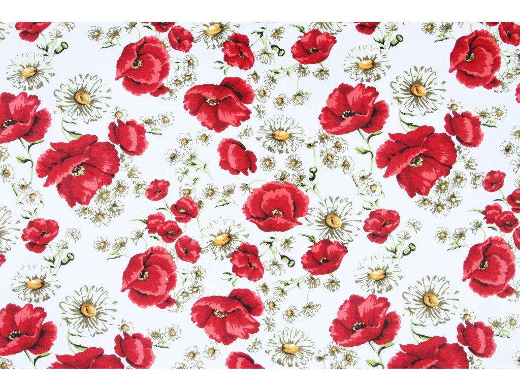 Bavlnená látka Rozkvitnuté maky biela š.160