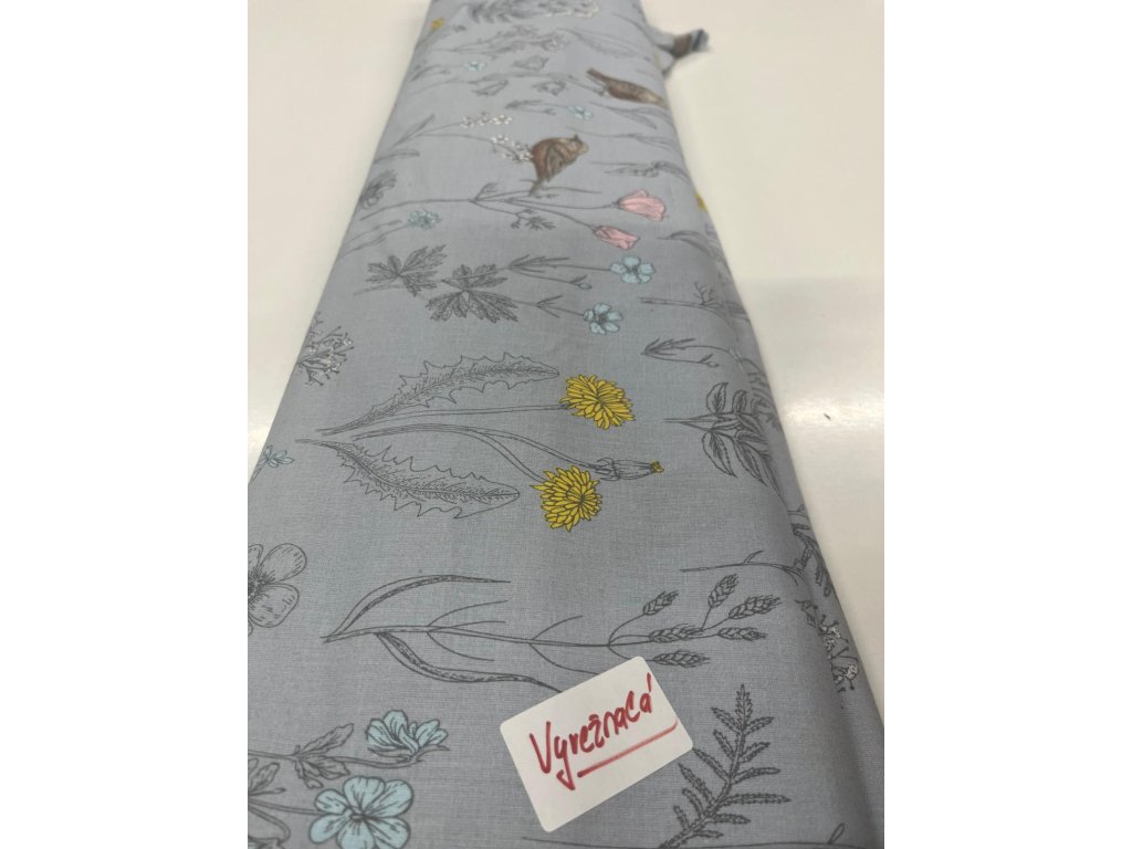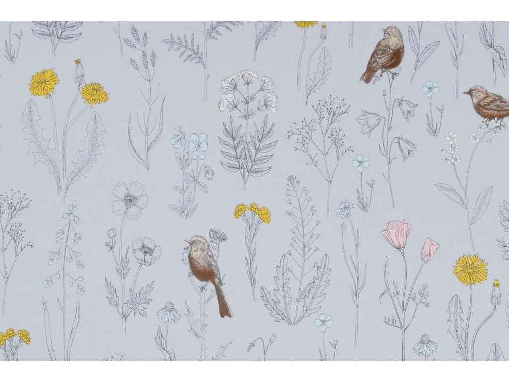 Bavlnená látka Vtáčiky v kvete - svetlo modrá š.160 - II.akost