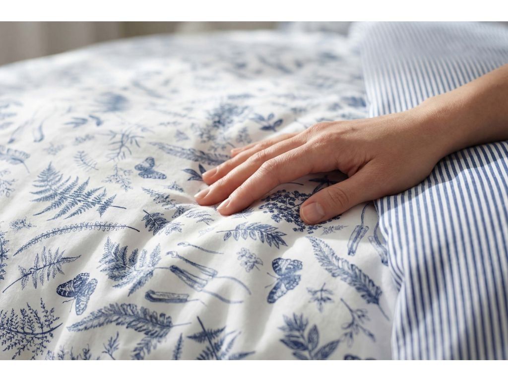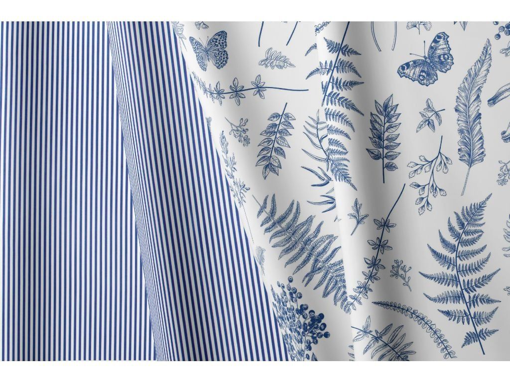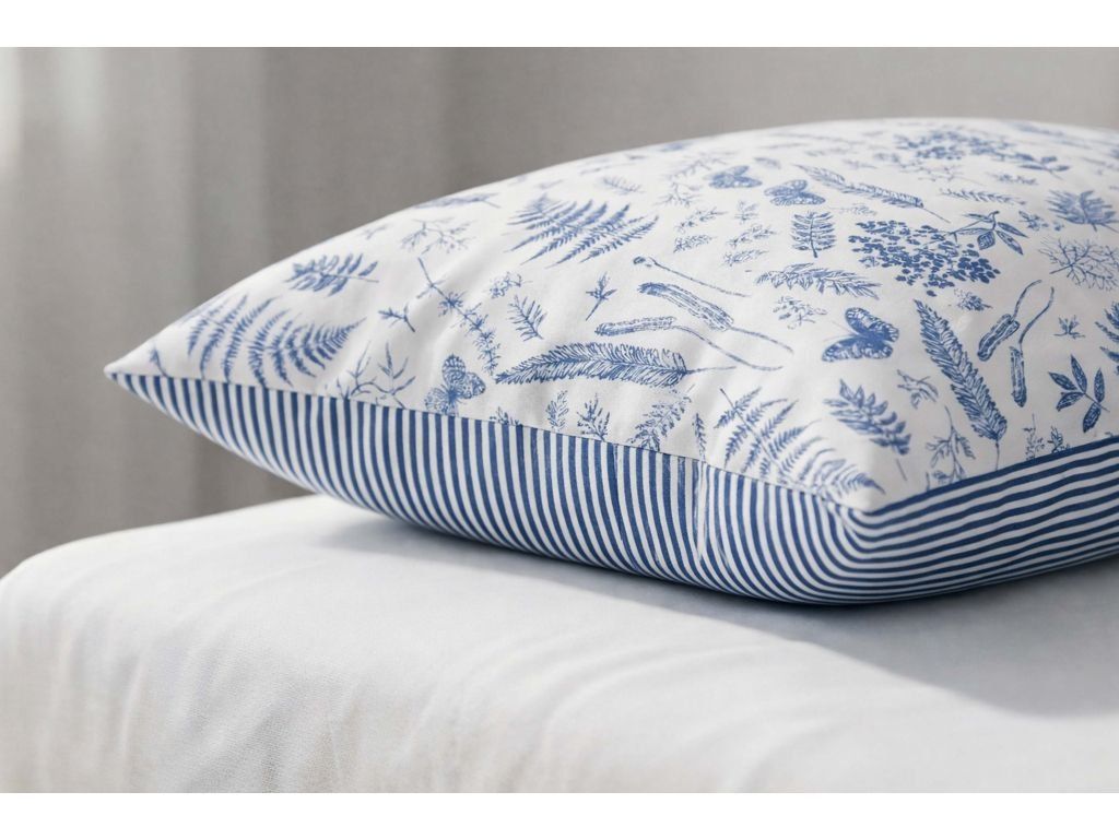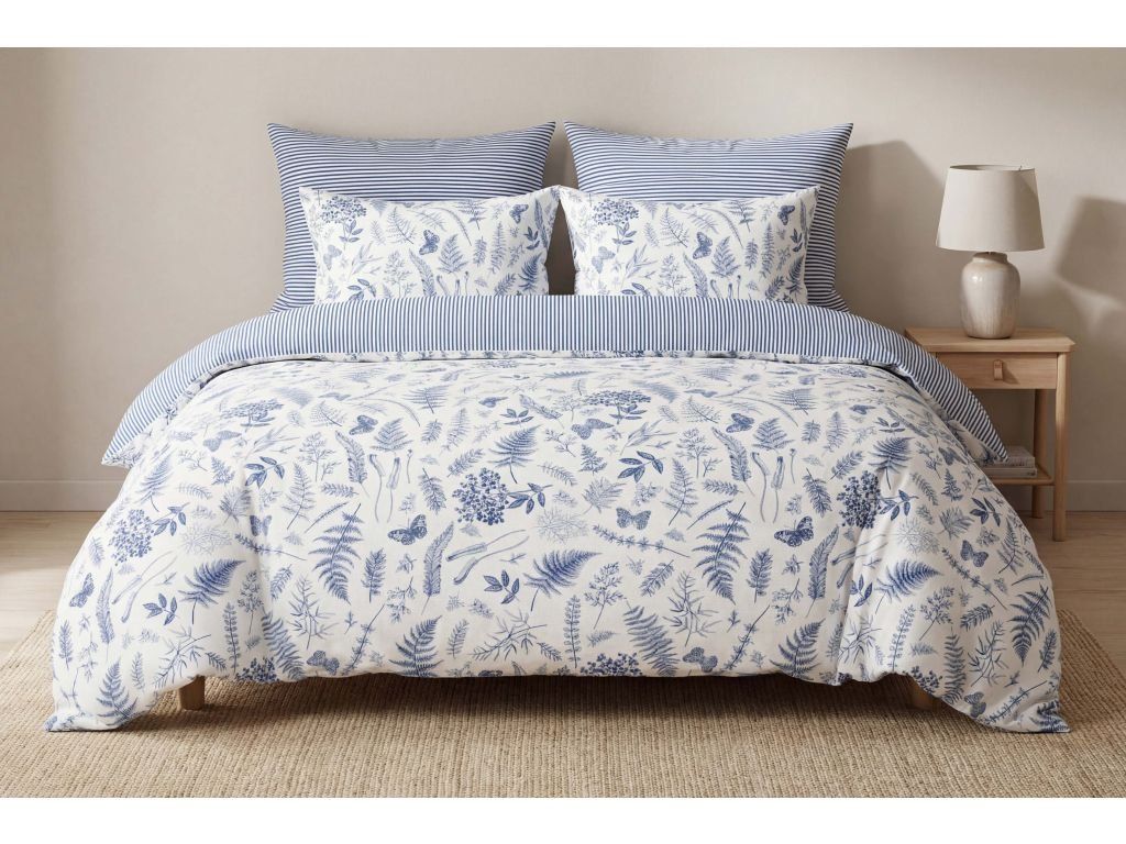 Bavlnená posteľná bielizeň V papraďoch s pruhom - bielo-modrá - 220x220+2x70x90 - 2. kvalita