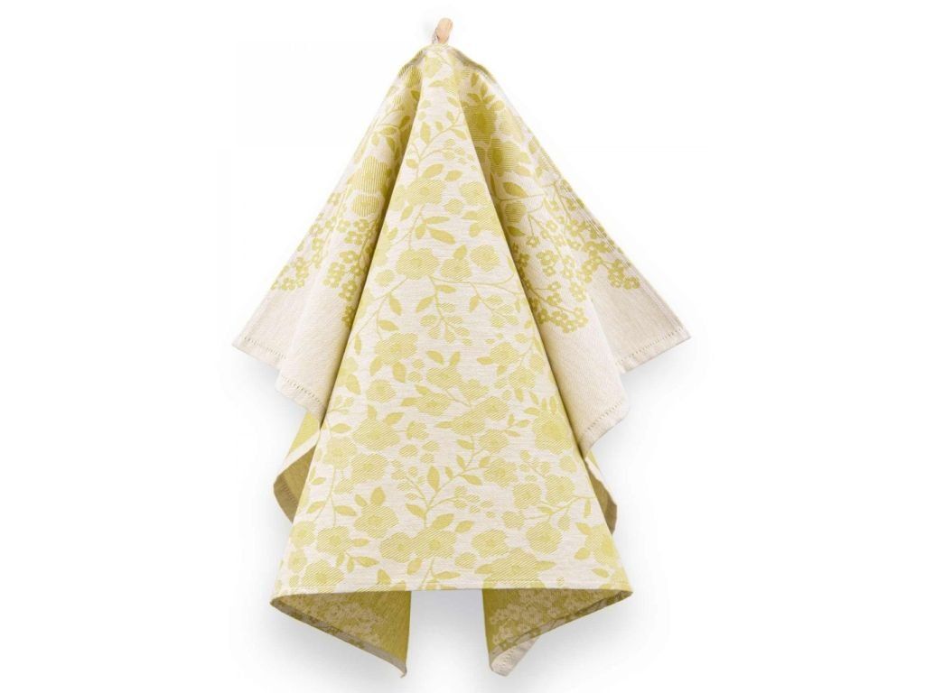 Bavlnená utierka olivová Kytičky - 2. akosť