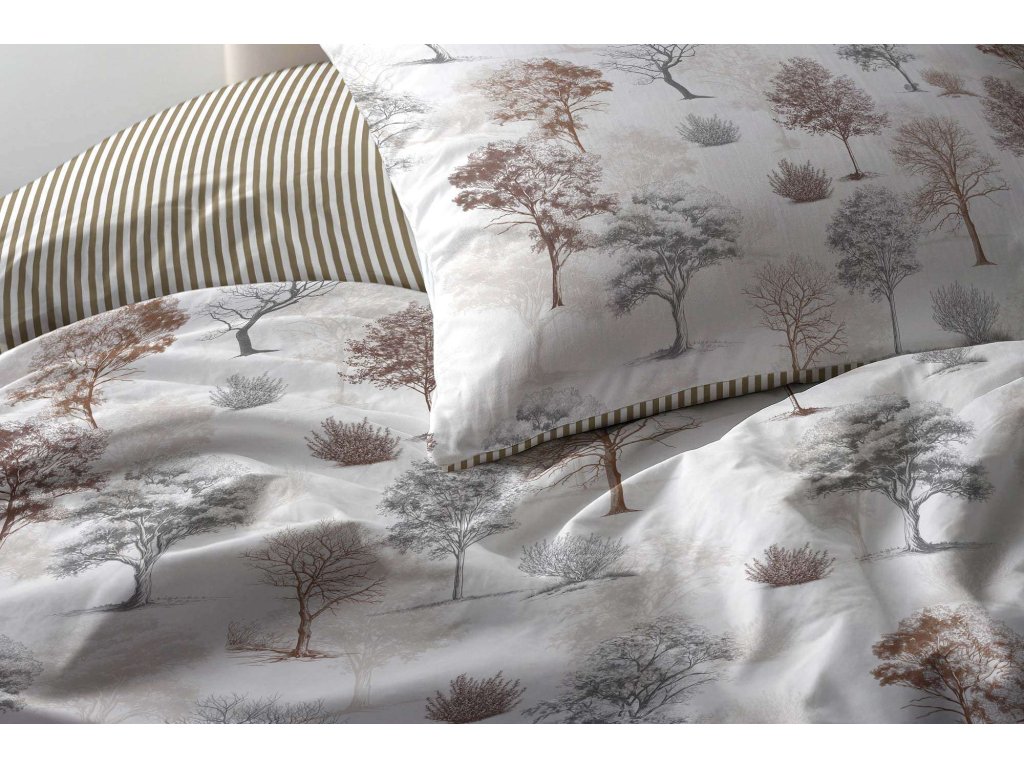 Bavlnené obliečky Tiene stromov s pruhom - hnedé
