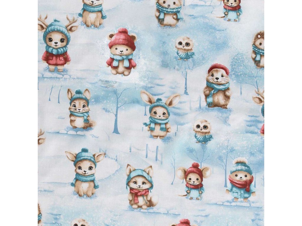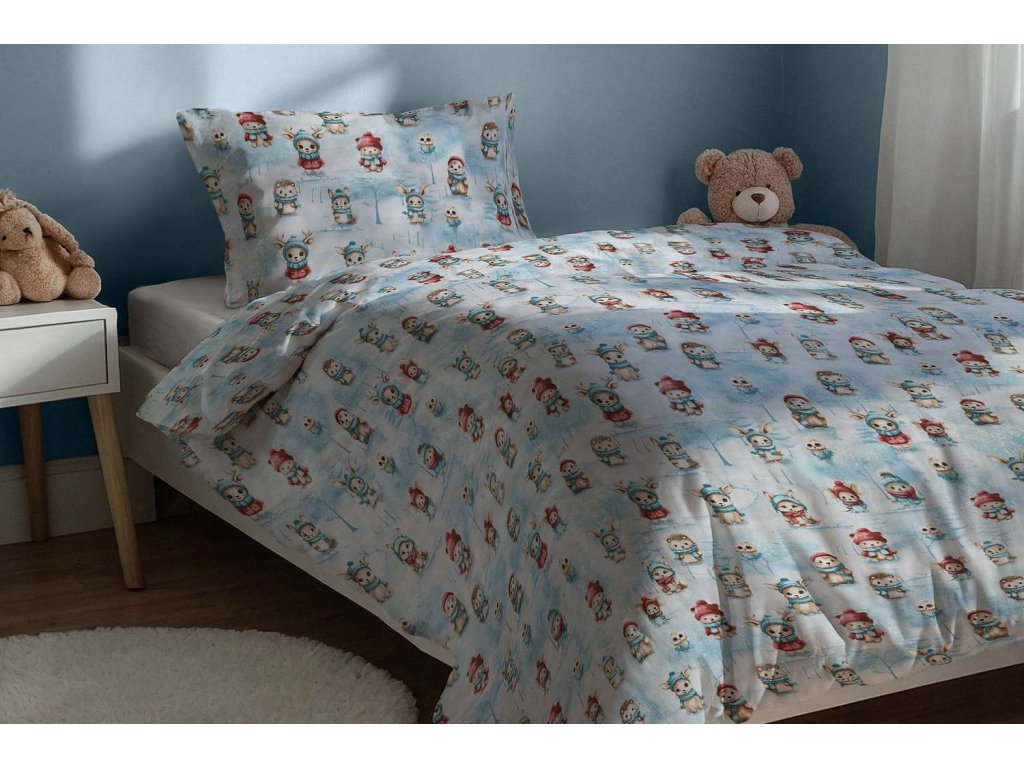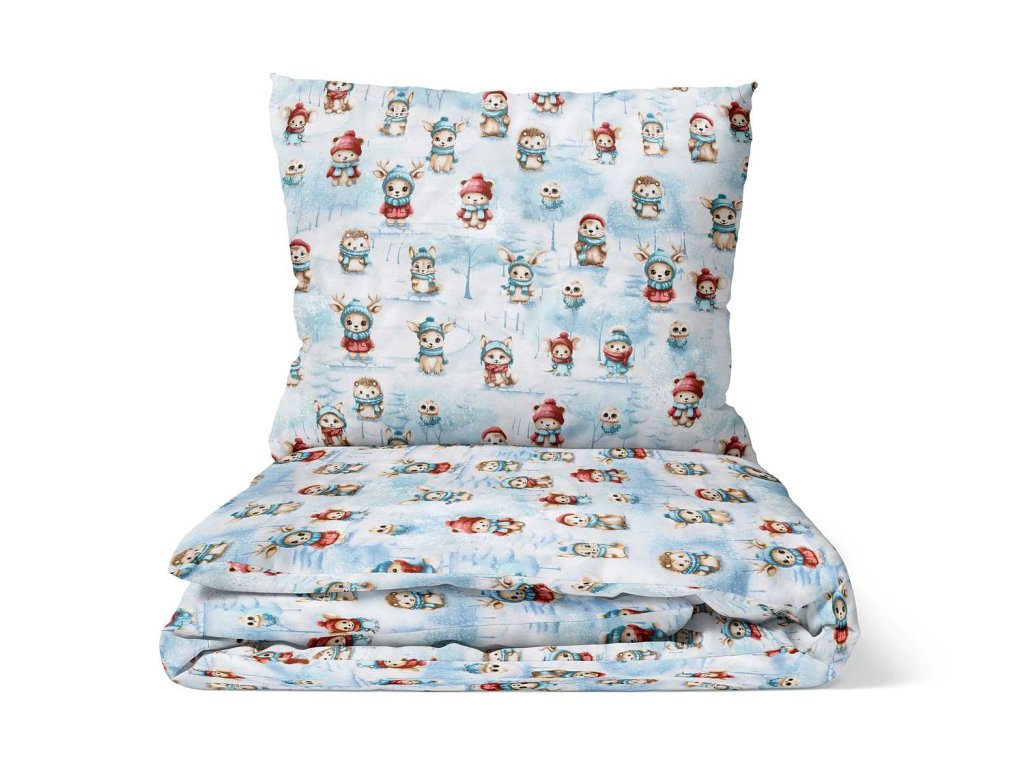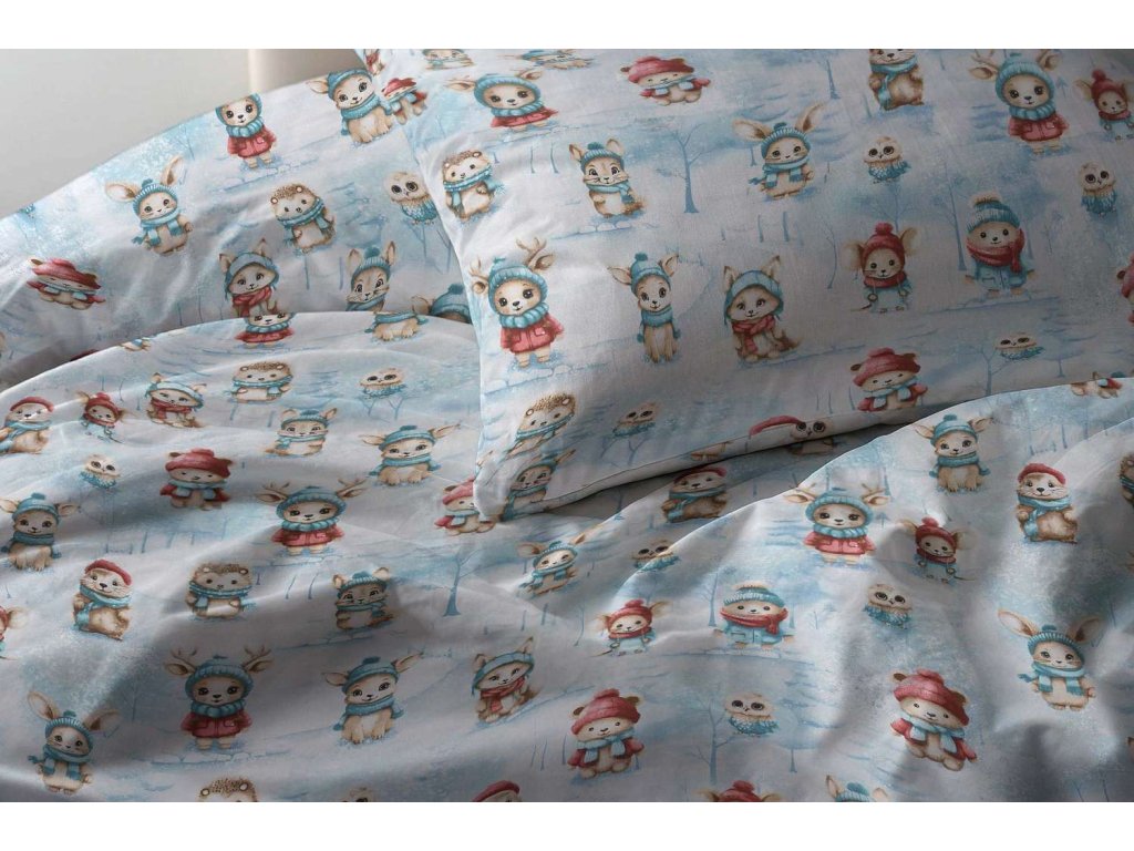 Bavlnené obliečky Zvieratká v zime - modré