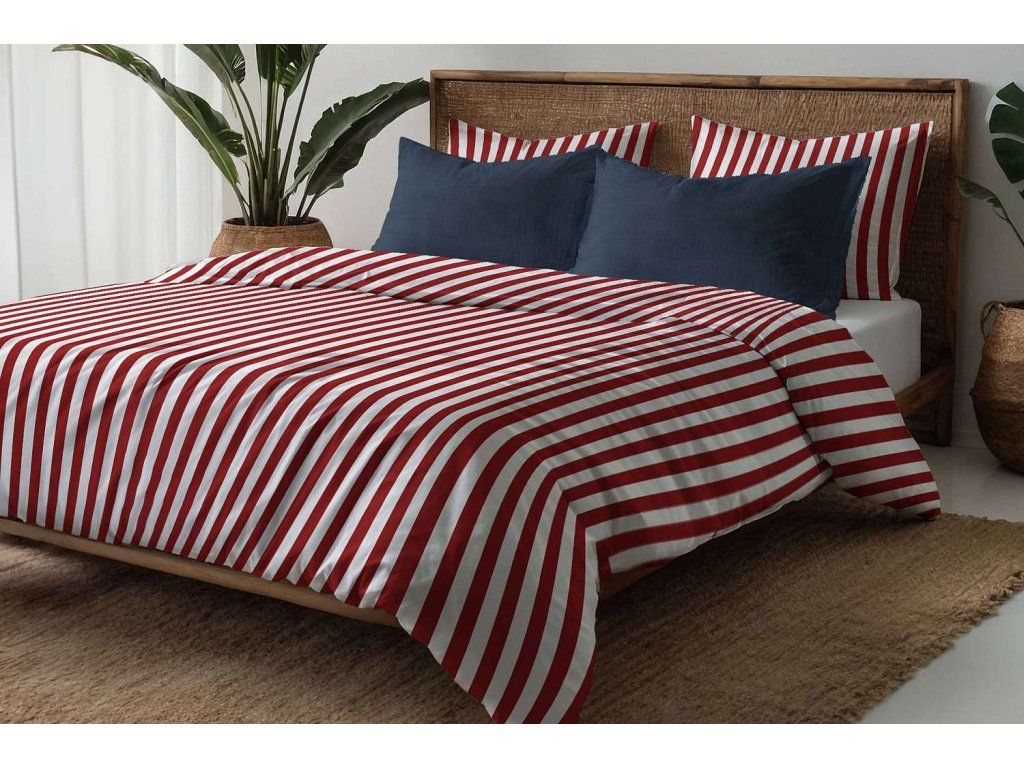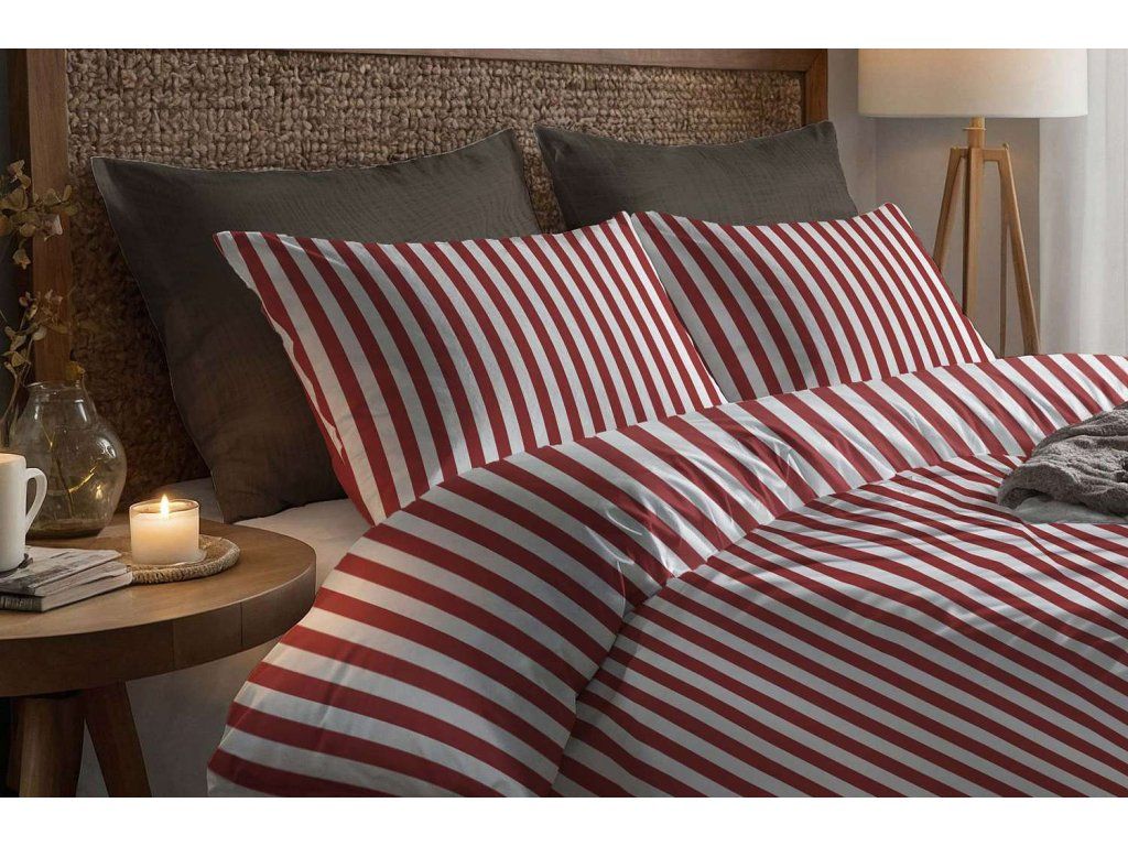 Bavlnené posteľné prádlo Pruhované - červené