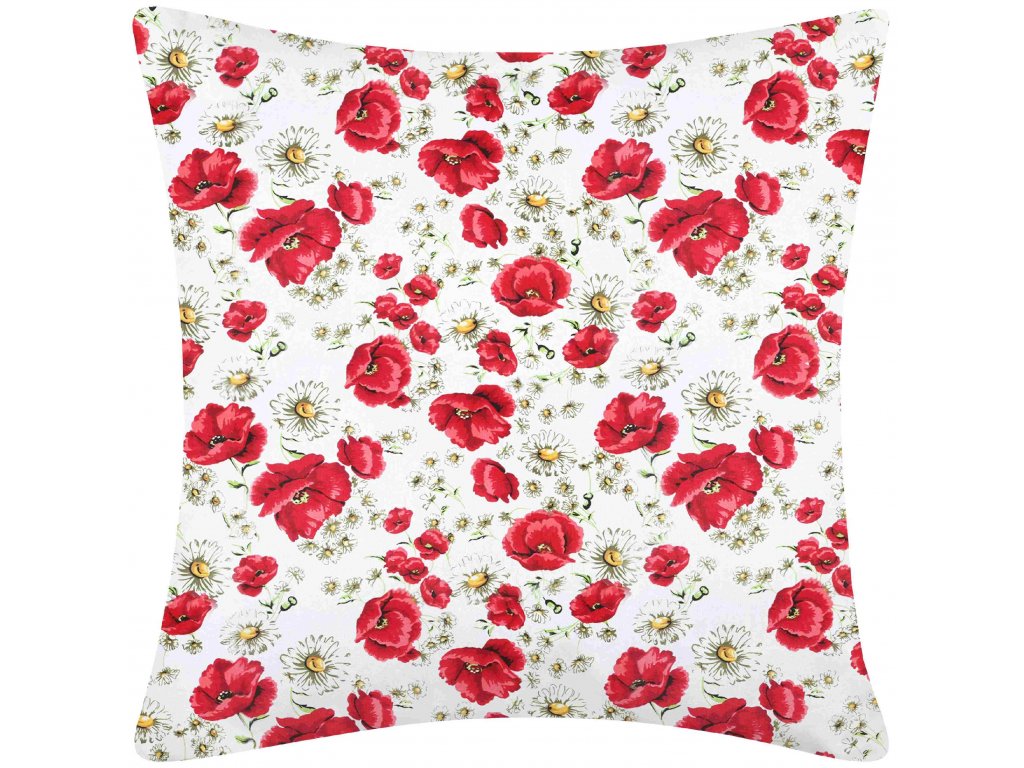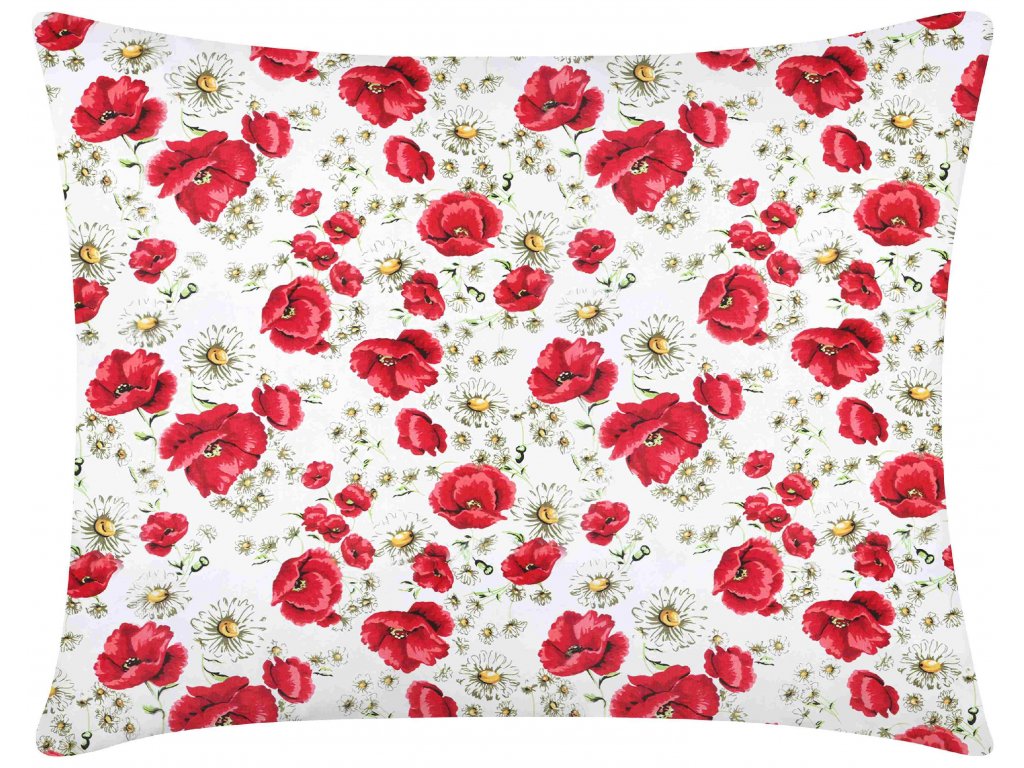 Bavlnená obliečka na vankúš Rozkvitnuté maky biely