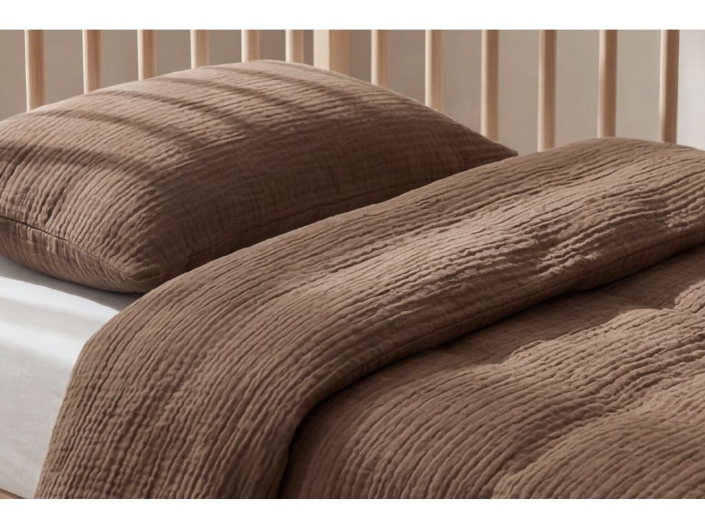 Celoročná mušelínová posteľná bielizeň do postieľky čokoládová - GOTS - 2. akosť