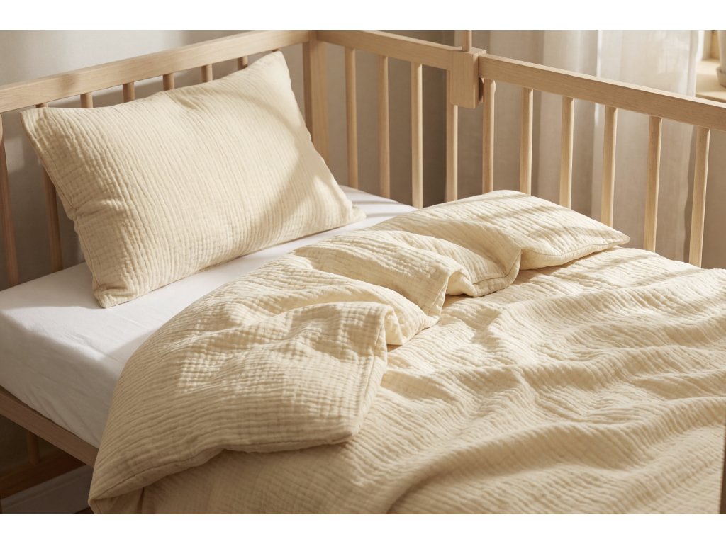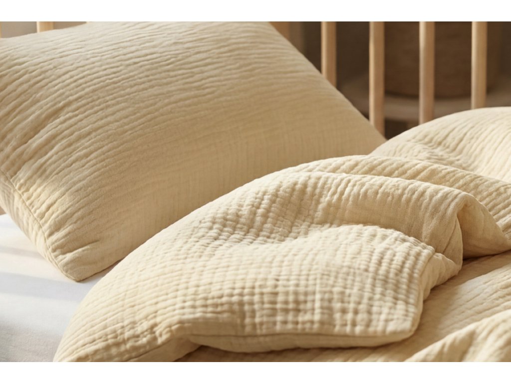 Celoročné mušelínové obliečky do postieľky Pieskové - GOTS