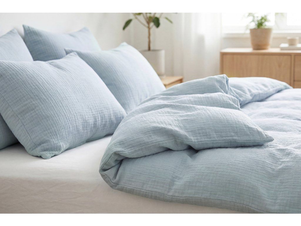 Celoročné mušelínové obliečky ľadovo modrá - GOTS - 2. akosť