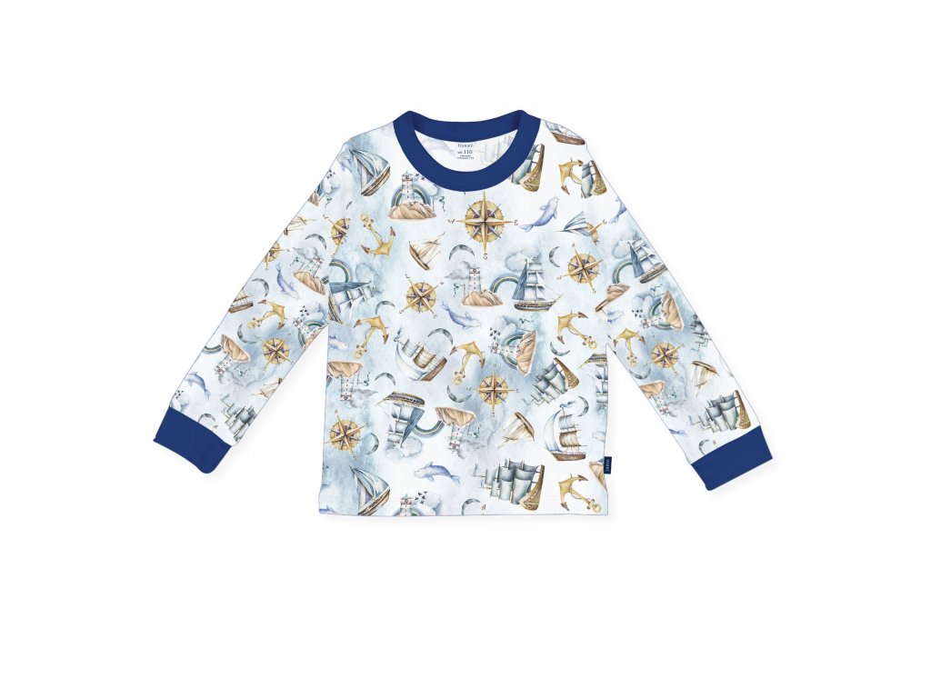 Doprajte svojim malým milovníkom dobrodružstvo detské pyžamo, ktoré nielen dobre vyzerá, ale je tiež pohodlné a odolné. Námorné motívy lodí a majákov sú vďaka digitálnej tlači vyvedené v krásnych sýtych farbách a modré nohavice dodávajú celému modelu originalitu. Pyžamá sú k dispozícii v rôznych veľkostiach, sú veľmi praktické a ľahko sa udržujú, čo je pre detské oblečenie veľmi dôležité. Použitie kvalitných materiálov a príjemný strih zaručujú maximálne pohodlie, tvarovú stálosť a jednoduchú údržbu.