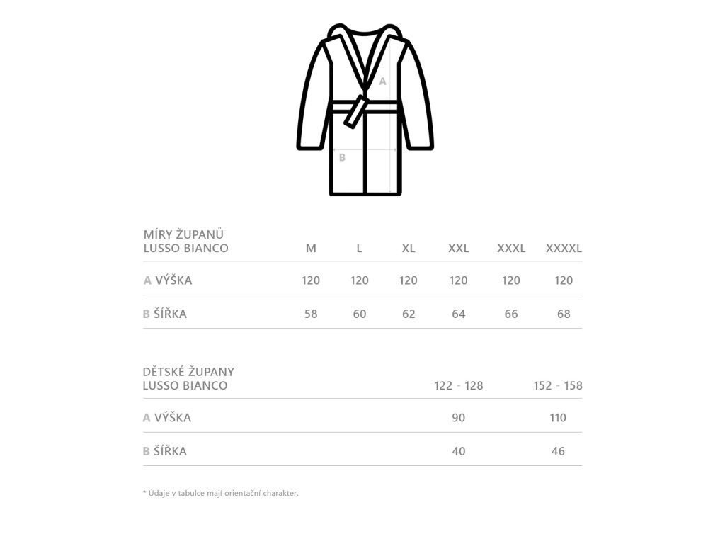 Užite si maximálne pohodlie a komfort s našimi županmi z kolekcie Lusso Bianco, ktoré sú vyrobené zo 100% bavlny! Tieto župany majú unisex strih a sú k dispozícii v šiestich rôznych veľkostiach: M, L, XL, XXL, 3XL a 4XL. Župany majú elegantný strih a sú doplnené o šálový golier. Každý župan je vybavený praktickými detailmi, medzi ktoré patrí najmä opasok, ktorý vám umožní prispôsobiť si župan podľa potreby a dve veľké vrecká na prednej strane.