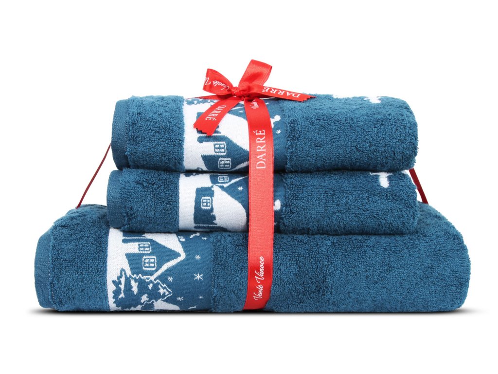 Výhodná sada uterákov a osušky Vianočné chalúpky - modrá