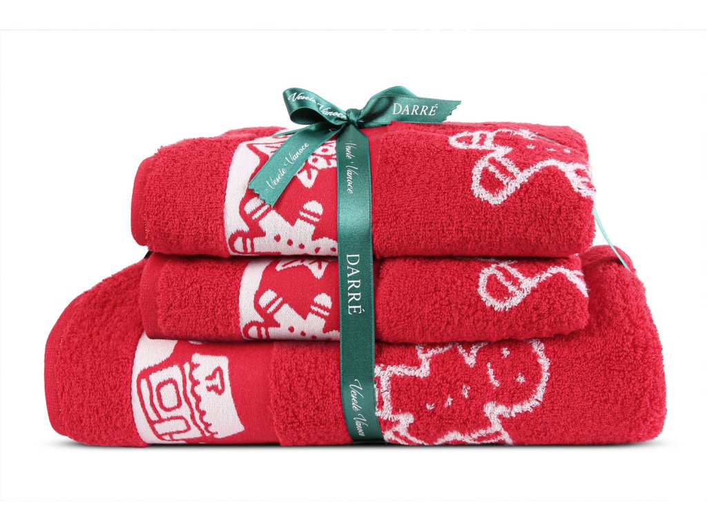 Výhodná sada uterákov a osušky Vianočné perníčky - červená