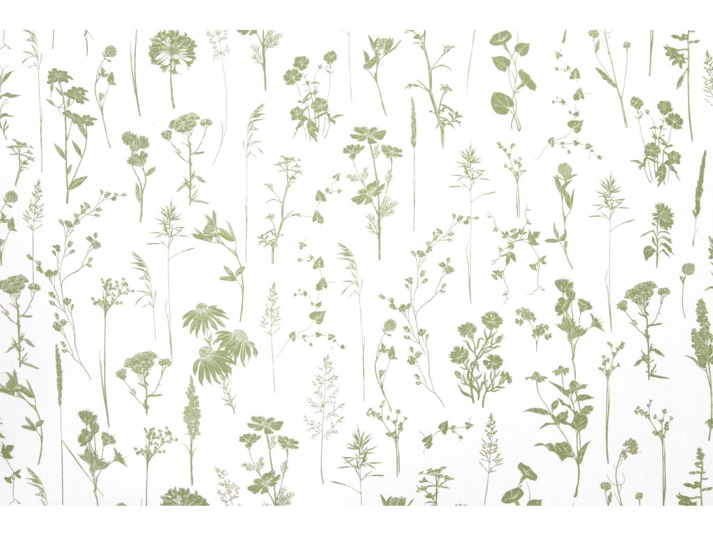 Zvyšok bavlnenej látky - Dotyk lúčnych kvetov - biela 65x160 cm