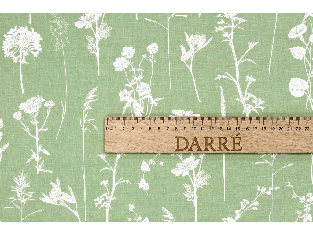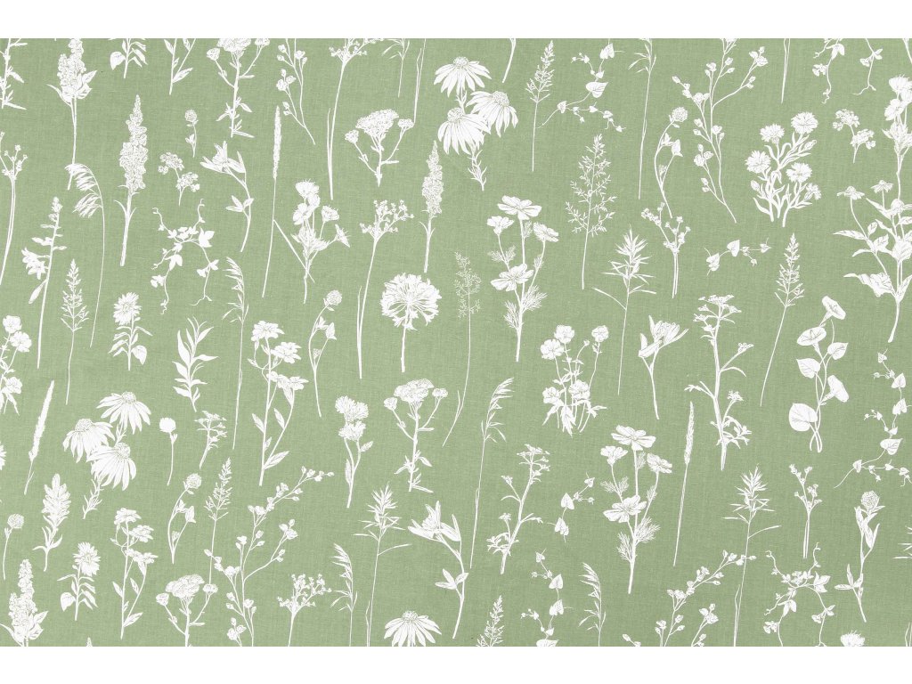Zvyšok bavlnenej látky - Dotyk lúčnych kvetov - zelená 60x160 cm