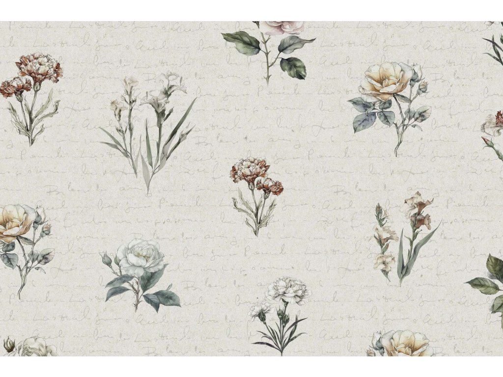 Zvyšok bavlnenej látky PERKÁL Nežná záhrada - svetlá - 95x160 cm