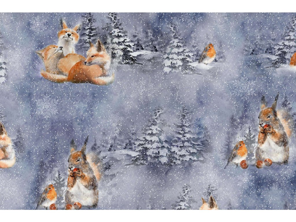 Zvyšok bavlnenej látky PERKÁL - Zimná rozprávka 50x70 cm
