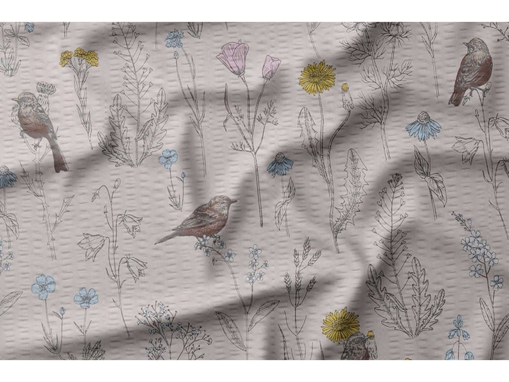Zvyšok krepovej látky Vtáčiky v kvete - smotanová 50 x 160 cm